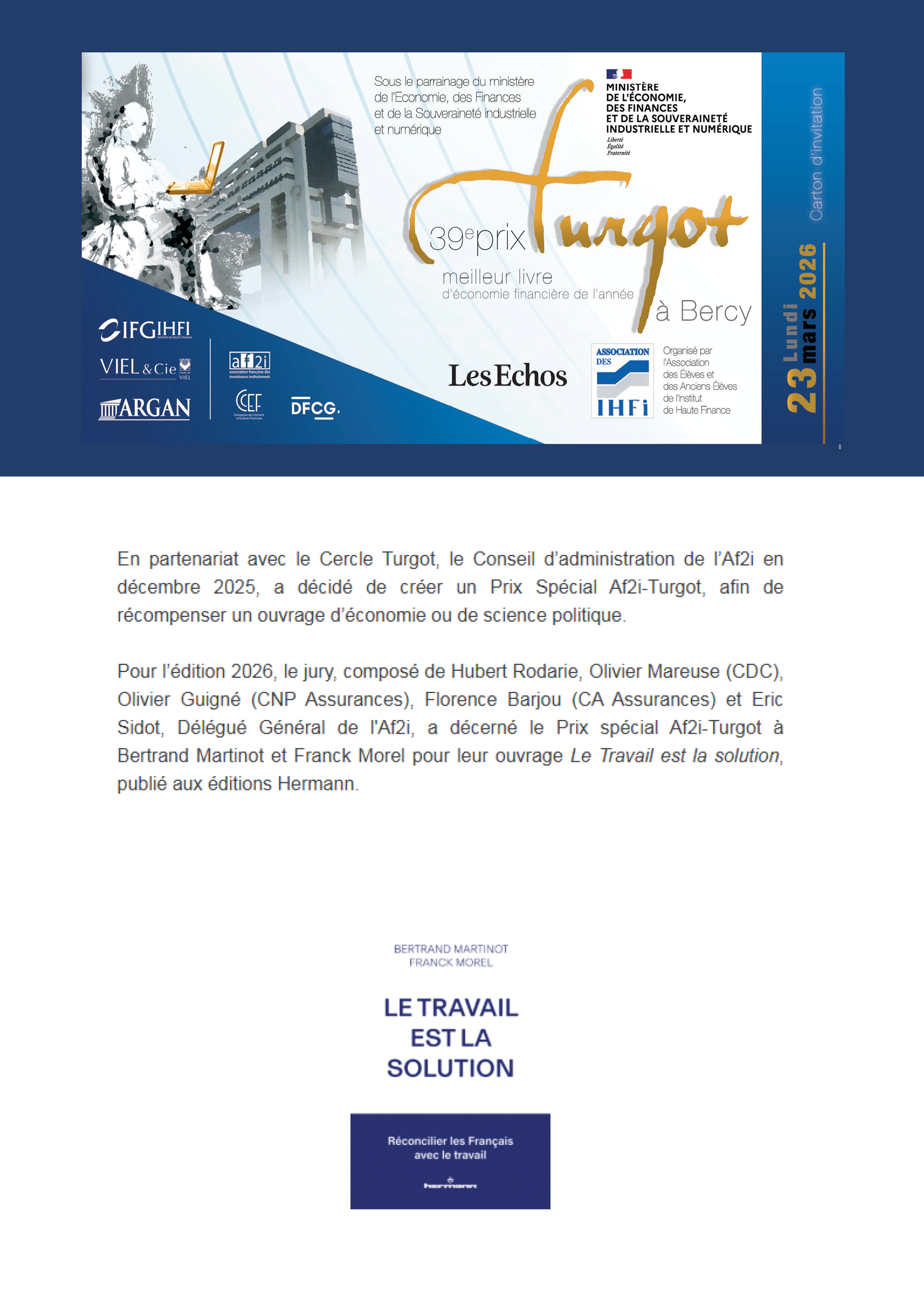 39e édition du Prix Turgot Lundi 23 mars 2026